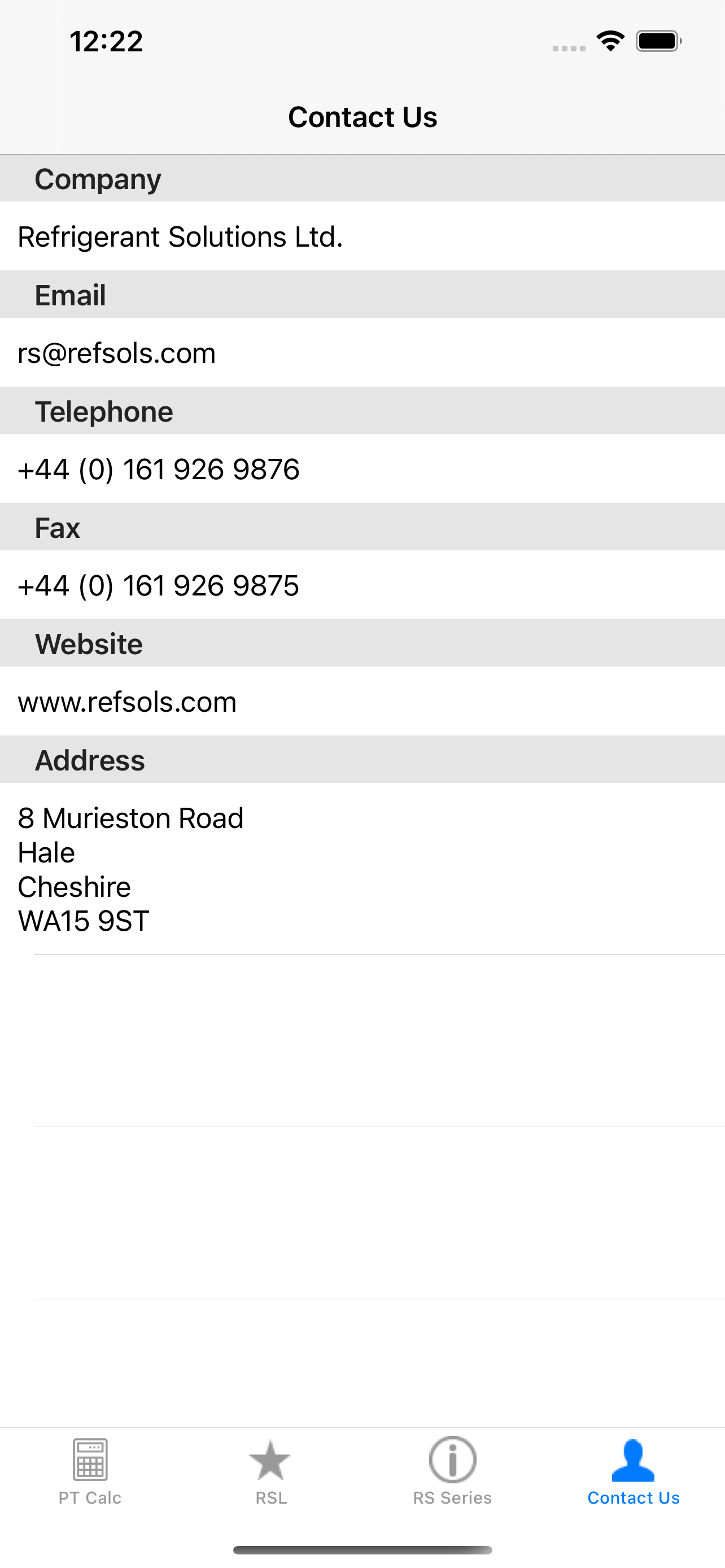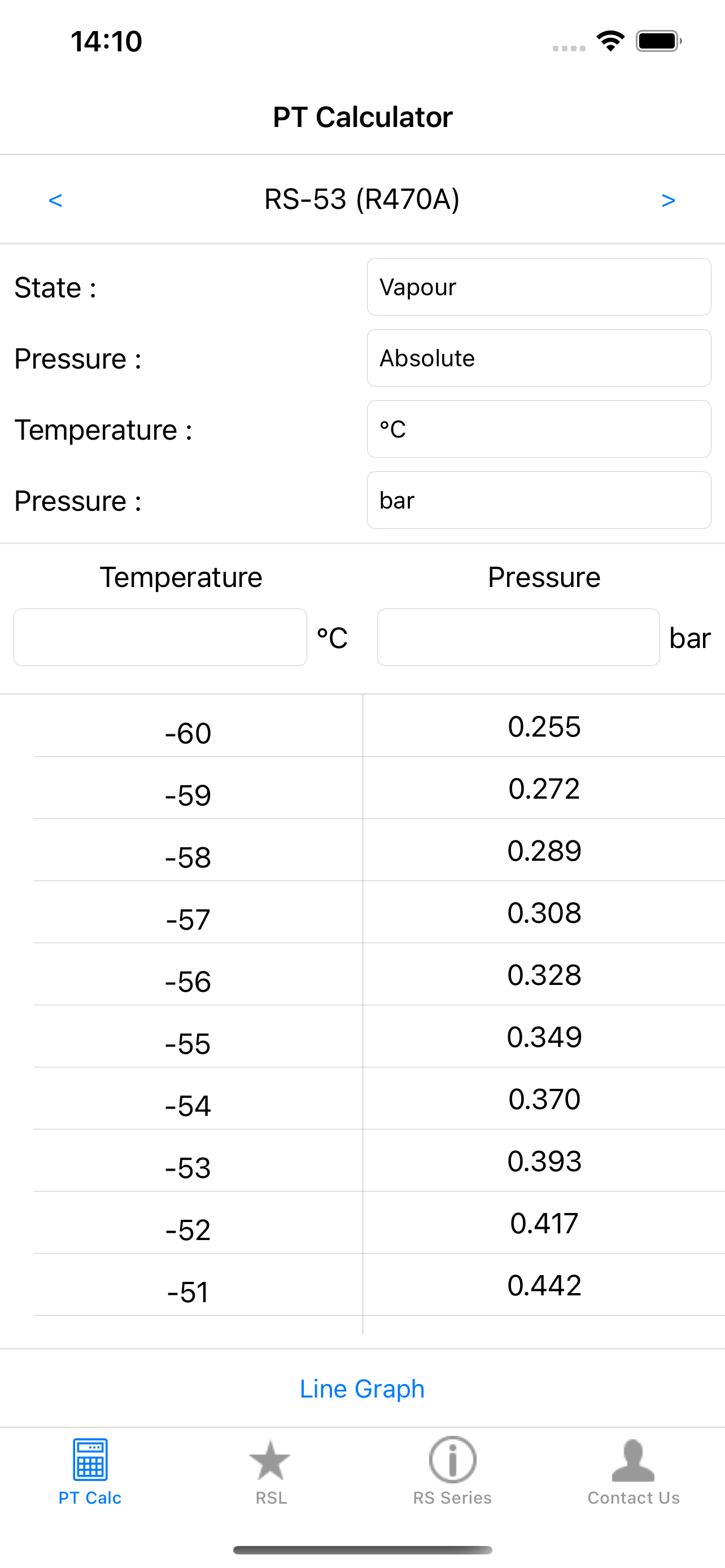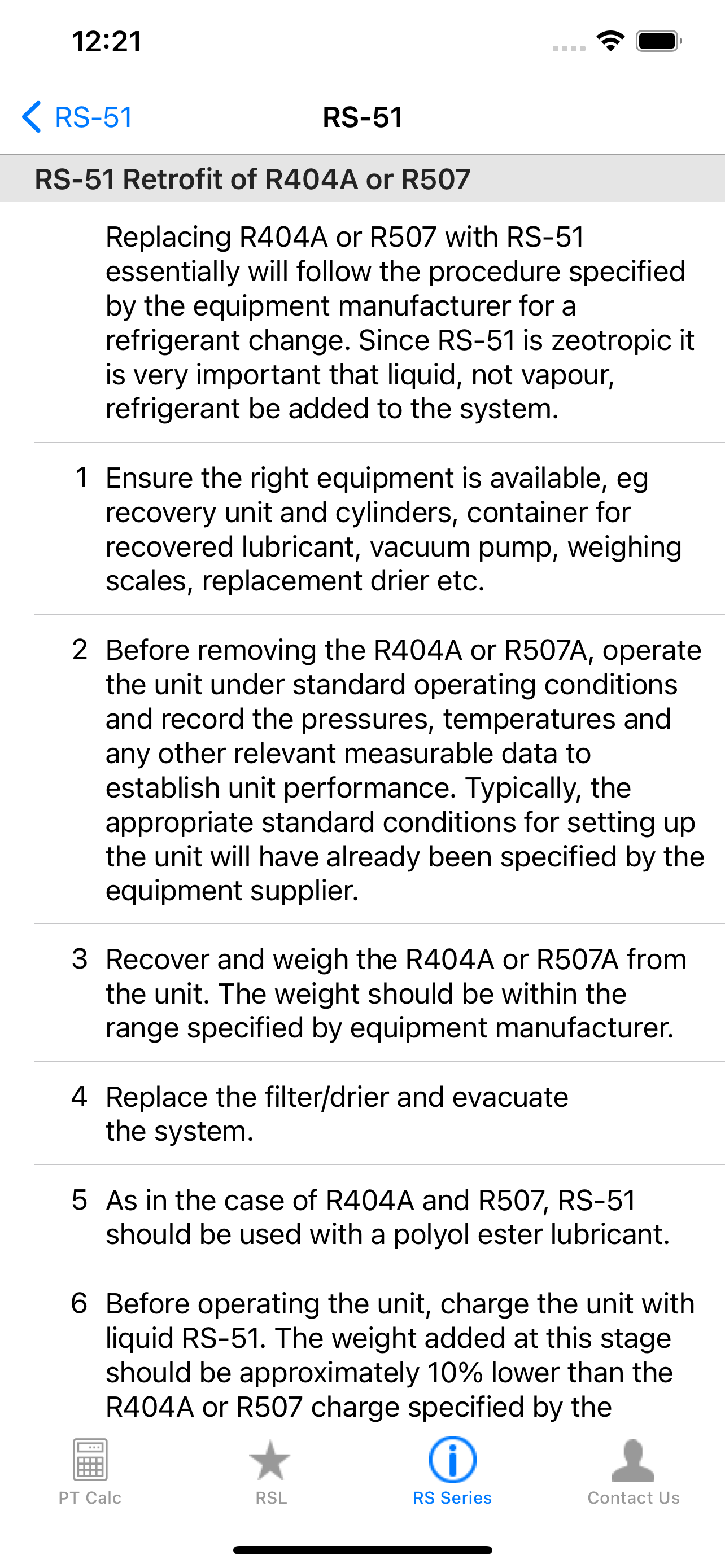 RSL is pleased to offer an iOS application for the RS series of refrigerants. The app provides the following: